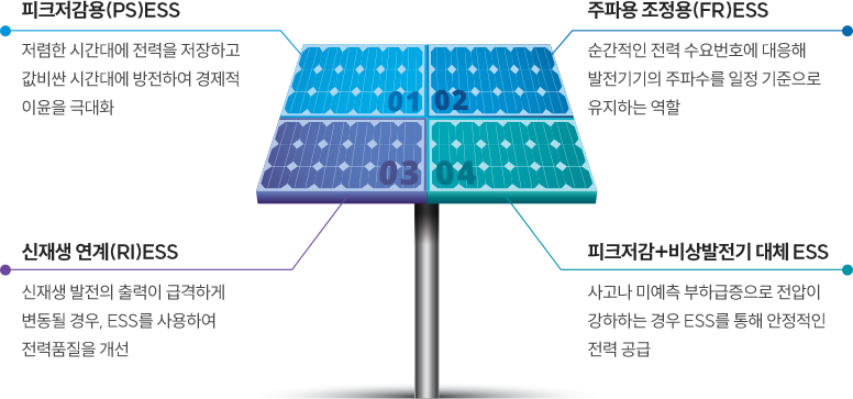 전기를 사용하기 위해 이를 ESS에 저장했다가 필요할 때 꺼내 쓰는 방식으로 ESS의 저장성 확장성이 요구된다.