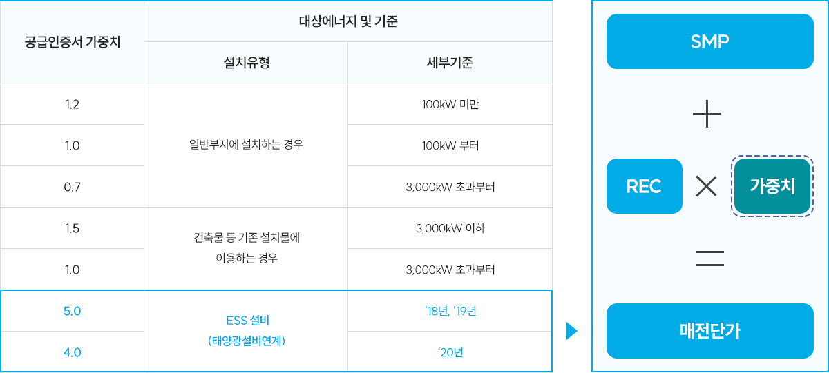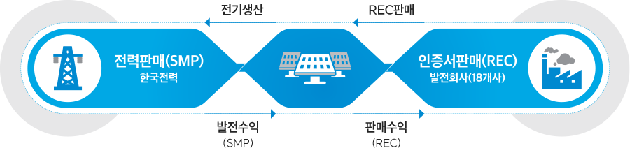 REC*(Renewable Energy Certificate) : 신재생에너지로 생산된 전력에 한해 발급되는인증서(1,000kWh 발전량당 1REC 발급)