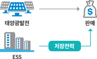 태양전지에서 발전된 전기를 바로 계통으로 송전하지 않고 전기저장장치(ESS)에 저장했다가 일정한 전력을 계통에